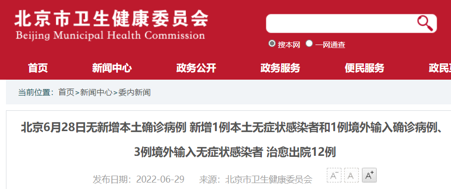 本土无症状感染者:现住朝阳区高碑店村二区,6月28日诊断为无症状感染者。