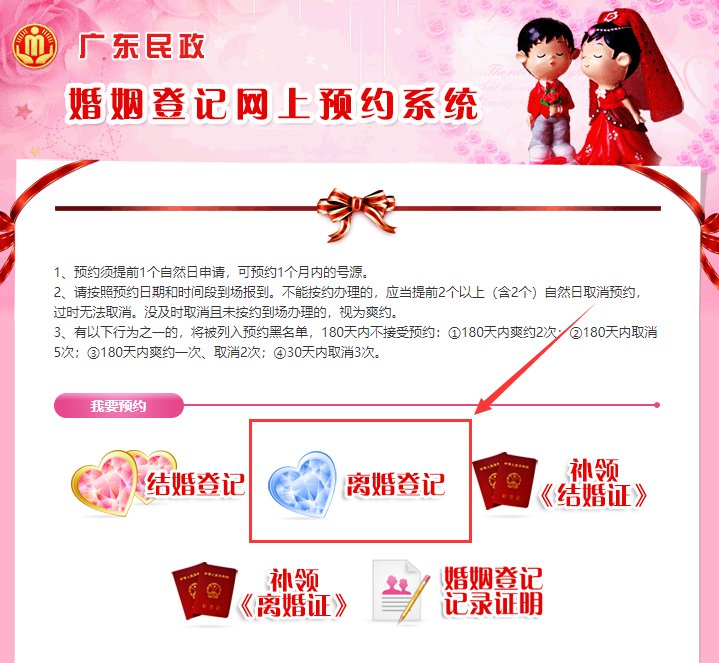 1、申请办理离婚登记的男女双方当事人商量好办证时间,可登录广东省婚姻登记预约系统,提前预约登记时间和登记机关。