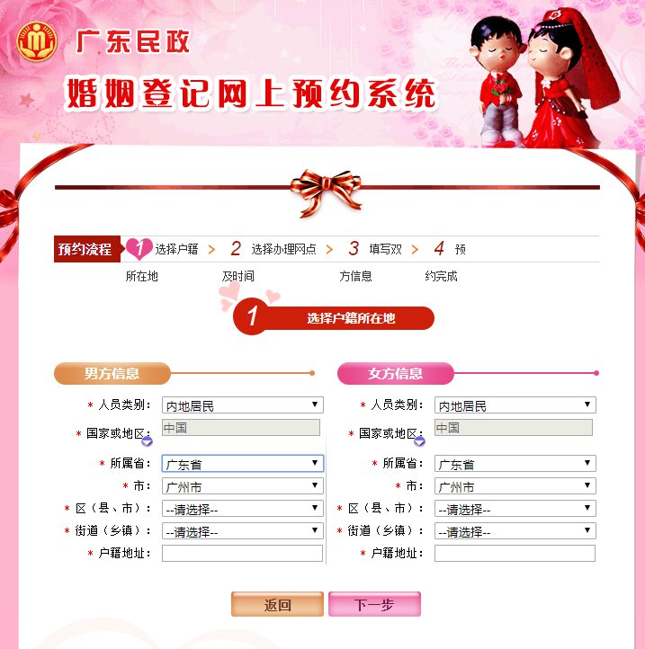 第三步:输入当事人双方信息,根据提示系统提示完成预约。