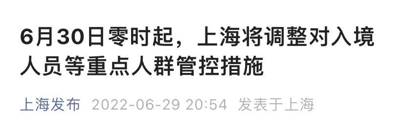 上海市新冠肺炎疫情防控工作领导小组办公室发布消息:为进一步做好我市新冠肺炎疫情防控工作,根据国务院联防联控机制《新型冠状病毒肺炎防控方案(第九版)》有关要求,自6月30日零时起,对入境人员管控措施调整如下: