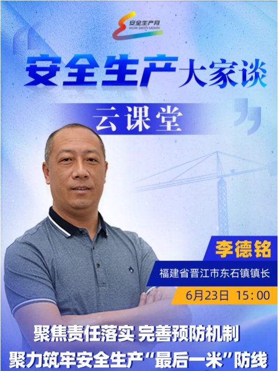 6月23日15:00,福建省晋江市东石镇镇长讲述聚焦责任落实 完善预防机制,聚力筑牢安全生产“最后一米”防线;