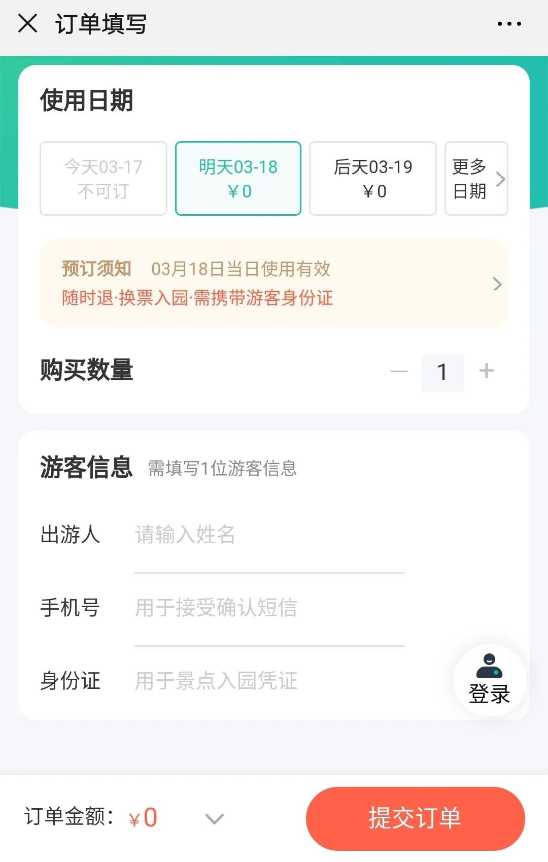 02、持园林一卡通及其他免票人群(医务工作者、1.4米以下儿童、老年卡等)请在预约购票中选择免票预约一栏进行身份信息的填写.