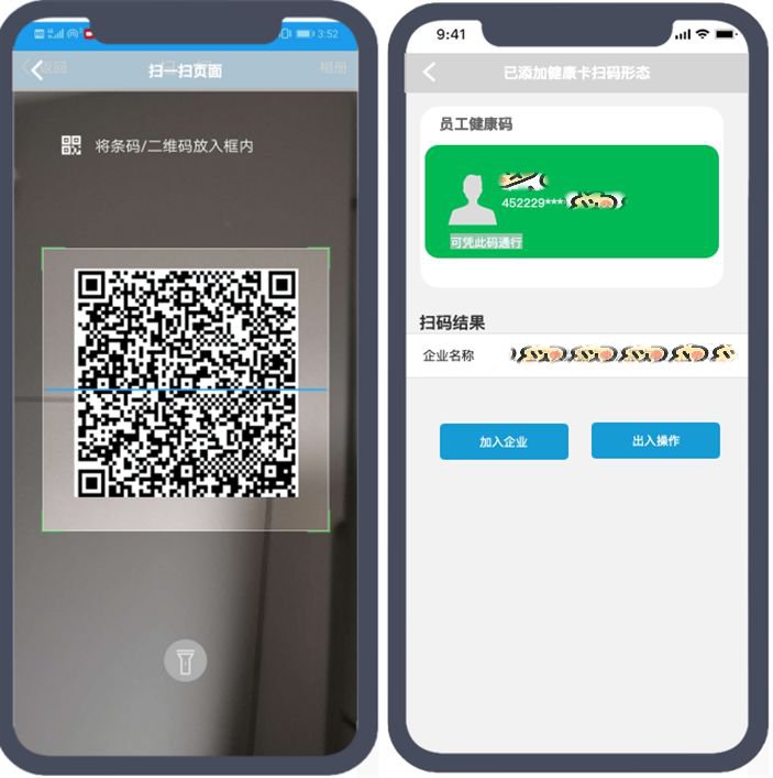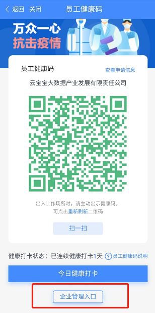 3、企业管理员截图“企业二维码”给员工,员工打开健康码页“扫一扫”功能,扫描企业二维码,跳转自主扫码页,选择授权加入企业,点击完成后,加入企业成功。