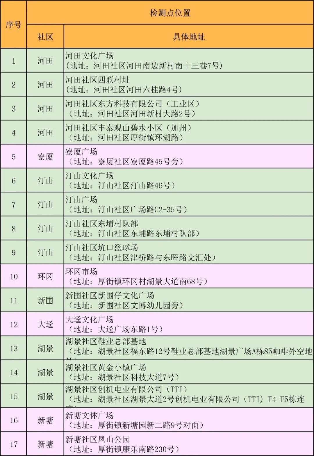 二、检测对象:全镇户籍人口、常住人口以及来(返)厚街人员。