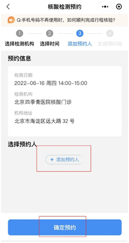 7、点击“添加预约人”,确认好信息后点击“确定预约”