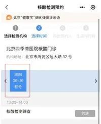 6、选择检测时间,只可以选择有号源的时段