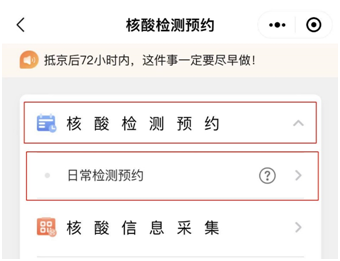 3、进入核酸检测预约界面,点击“核酸检测预约”下的“日常检测预约”
