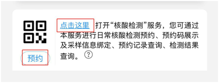 2、进入核酸疫苗服务查询界面,点击页面最下方的“预约”或“点击这里”