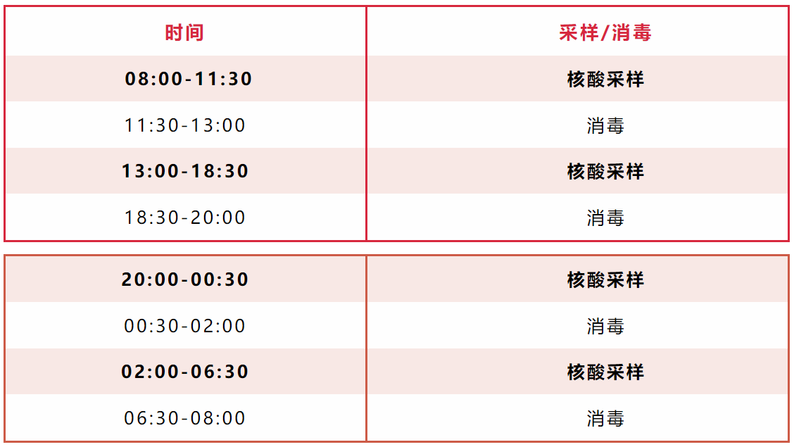 注意:以上消毒时间,采样暂停。