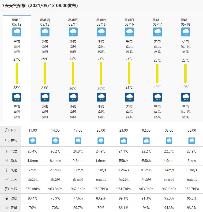 桂林未来7天天气情况如下(2021年5月12日至18日):