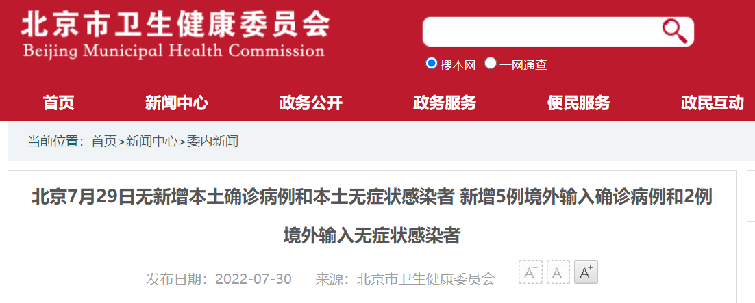 7月29日0时至24时,无新增本土确诊病例、疑似病例和无症状感染者;新增5例境外输入确诊病例和2例无症状感染者,无新增疑似病例。