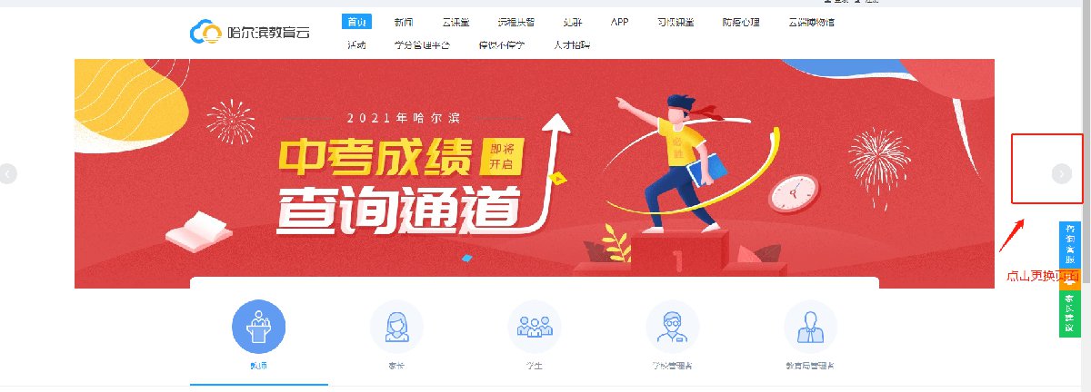 2、点击右边的更换轮换图,调到成绩查询页面,点击进行查询