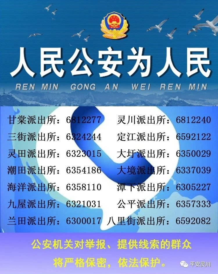 欢迎广大人民群众积极举报违法犯罪线索,举报电话: 110。