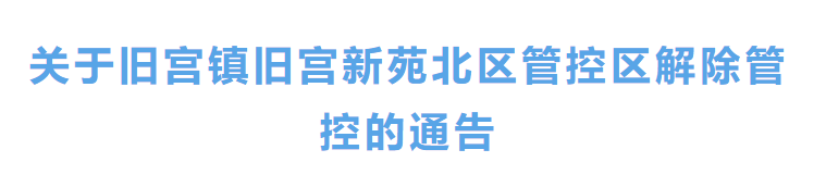 经大兴区新冠肺炎疫情防控工作领导小组批准,按照有关规定,旧宫镇旧宫新苑北区7号楼已于2022年6月20日6时从封控区调整为管控区,目前管控期已满,现就旧宫新苑北区7号楼解除管控有关事宜通告如下: