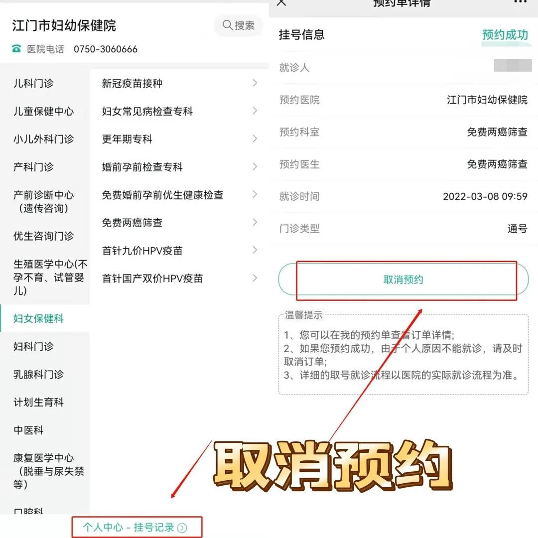 3.预约挂号——选择妇女保健科——免费两癌筛查: