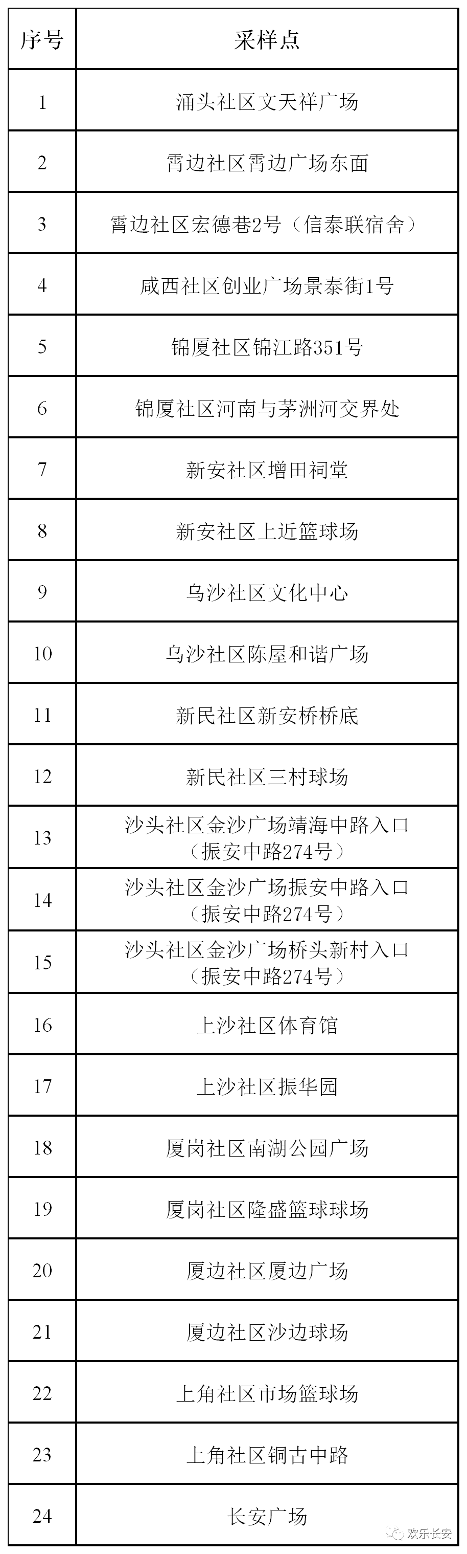 三、检测地点:全镇共设置24个固定核酸检测点(具体见下表),请市民选择就近检测点进行检测。