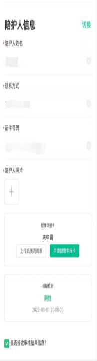 完成实名认证后,填报电子陪护证信息,等待审核通过。