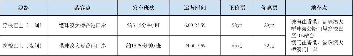 港珠澳三地为旅客提供24小时穿梭巴士服务,车票24小时有效。