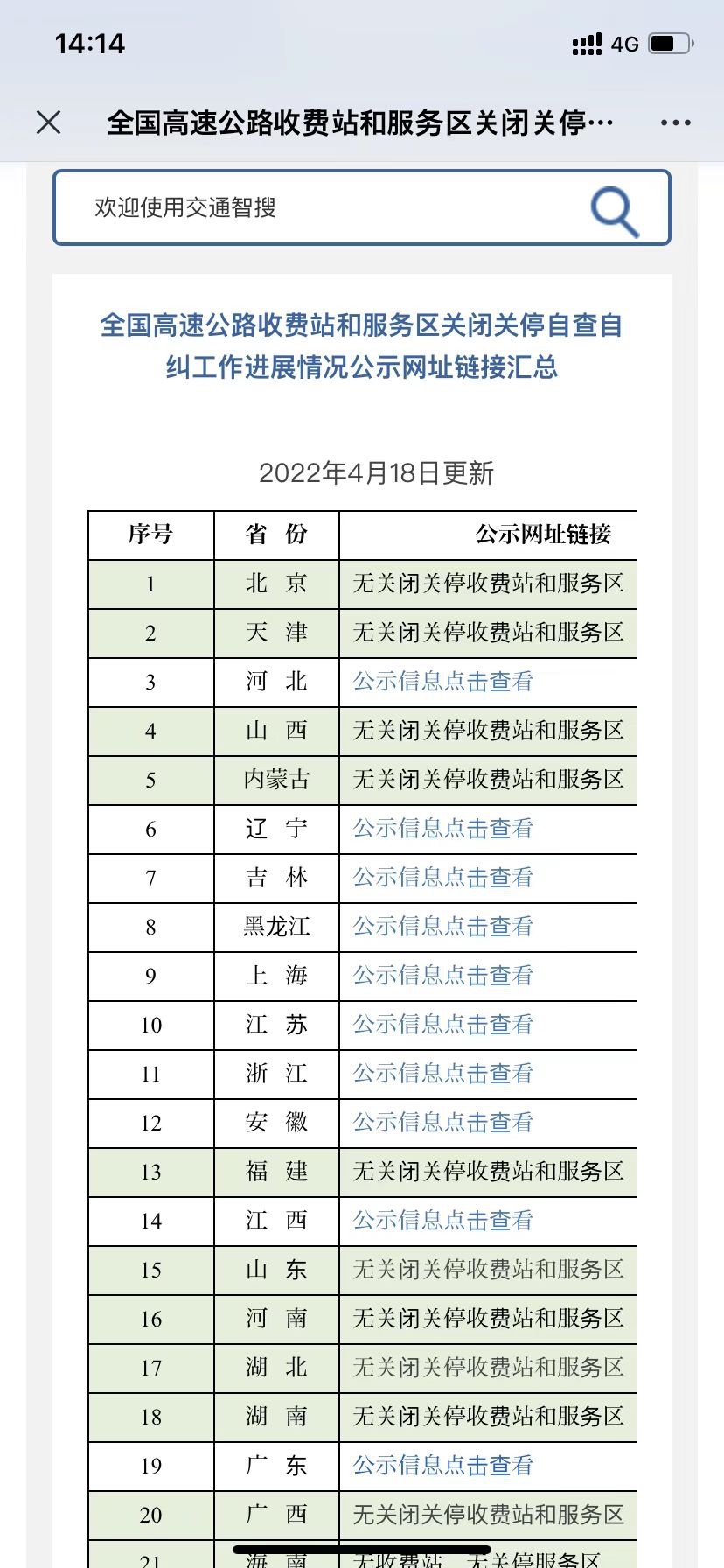 此外,还可以通过点击此链接进入交通运输部政府网查看全国高速公路收费站和服务区关闭关停情况信息。