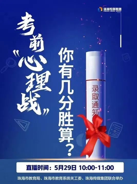 中小学生心理辅导教育目前已成为学校教育工作中不可或缺的部分,让孩子从小树立正确观念,形成高尚品质,是工作的重中之重。心理素质教育不仅仅是素质教育的基石,更是一个人健康成长的归宿。因此,珠海市教育局和珠海传媒集团联合开展心理健康教育主题系列直播活动。此次直播将将聚焦考生们考前心理压力等问题。