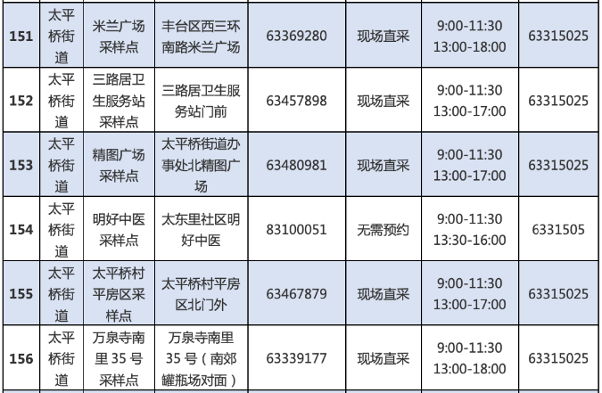 周边常态化核酸检测社会点位: