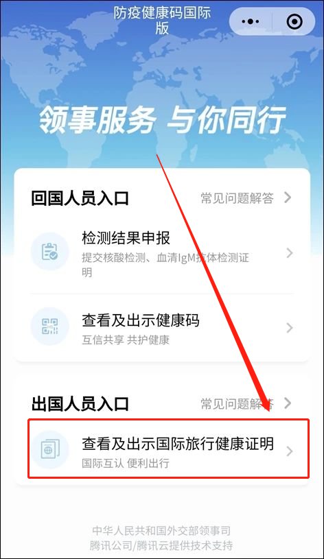 第三步:若您是出国人员,点击“查看及出示国际旅行健康证明”;