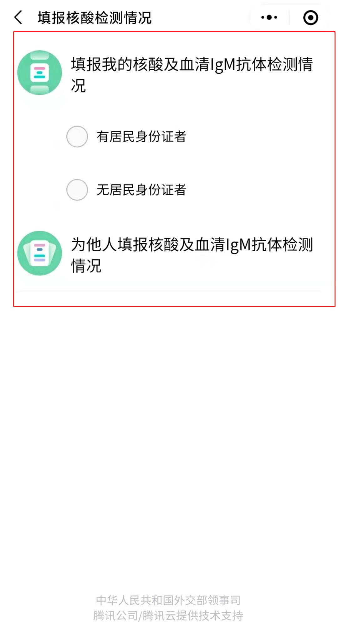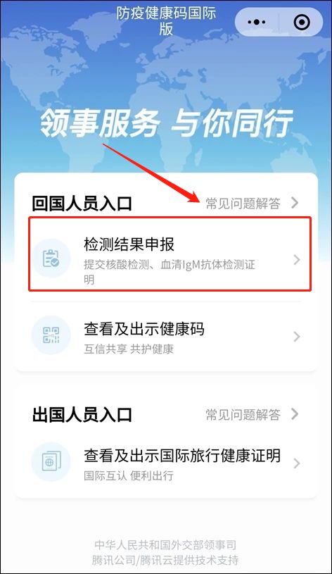 第二步:若您是回国人员,点击“检测结果申报”;
