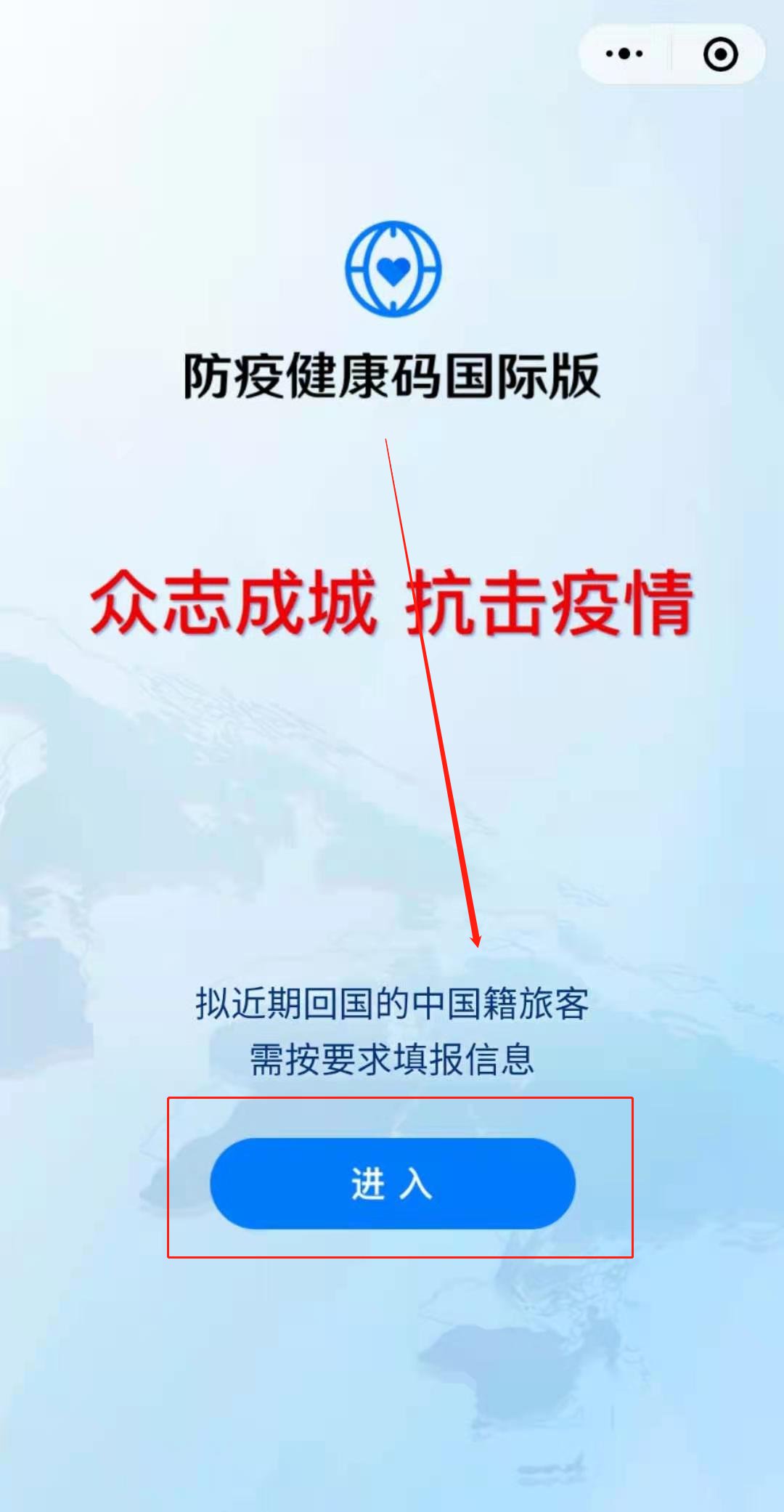 第一步:进入【防疫健康码国际版】,点击进入。