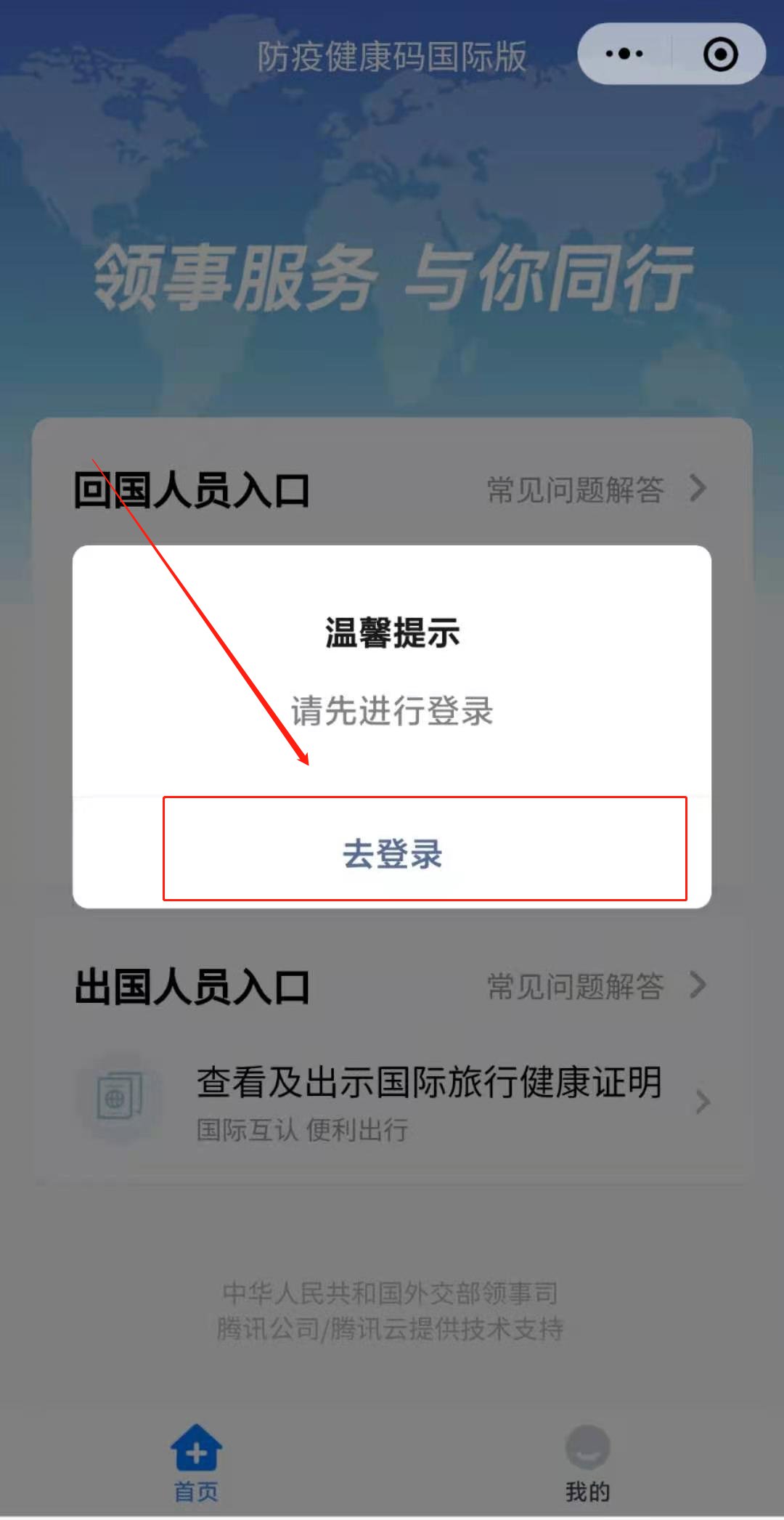 1、首次登陆人员,选择“去登录”;