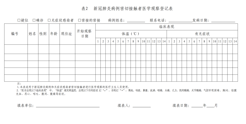 实施密切接触者医学观察的医疗卫生机构应当填写《密切接触者医学观察健康状况监测个案表》,做好登记和统计汇总(见附件 5-2)。及时通过密切接触者医学观察健康状况信息网络报告模块进行上报。各地需对每一例上报信息做好质量审核。