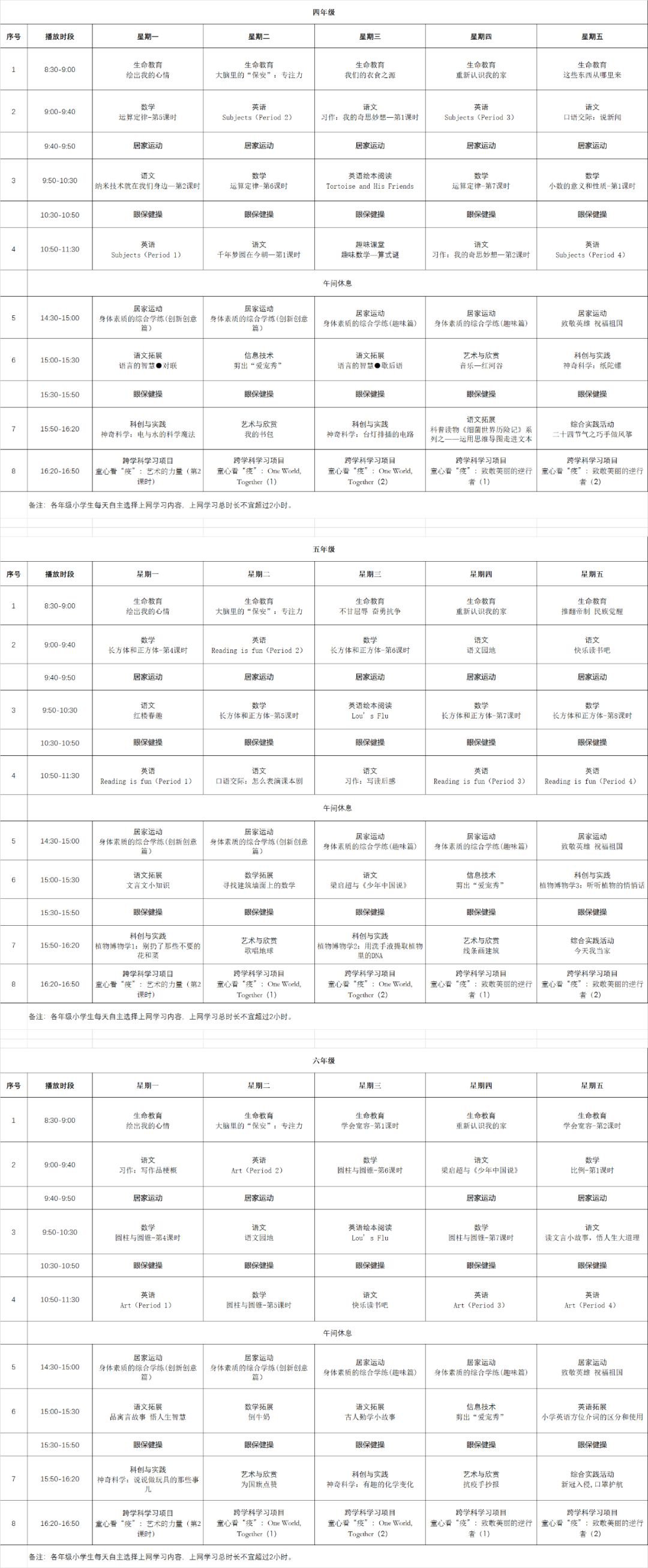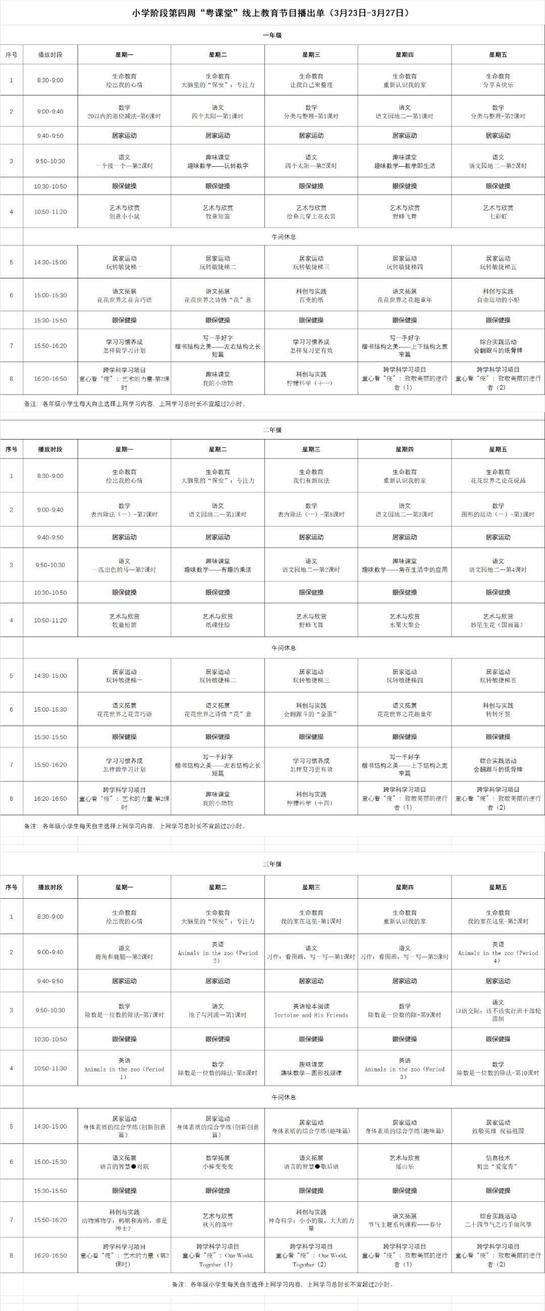 小学阶段第四周“粤课堂”线上教育节目播出单(3月23日-3月27日)
