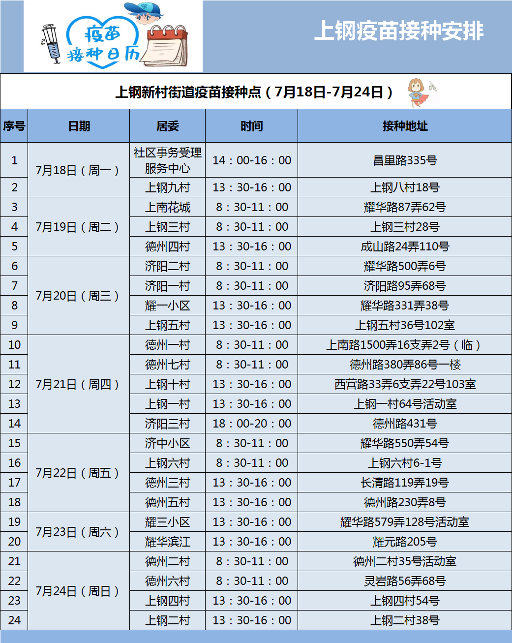 快来看看上钢“家门口”最新疫苗接种安排: