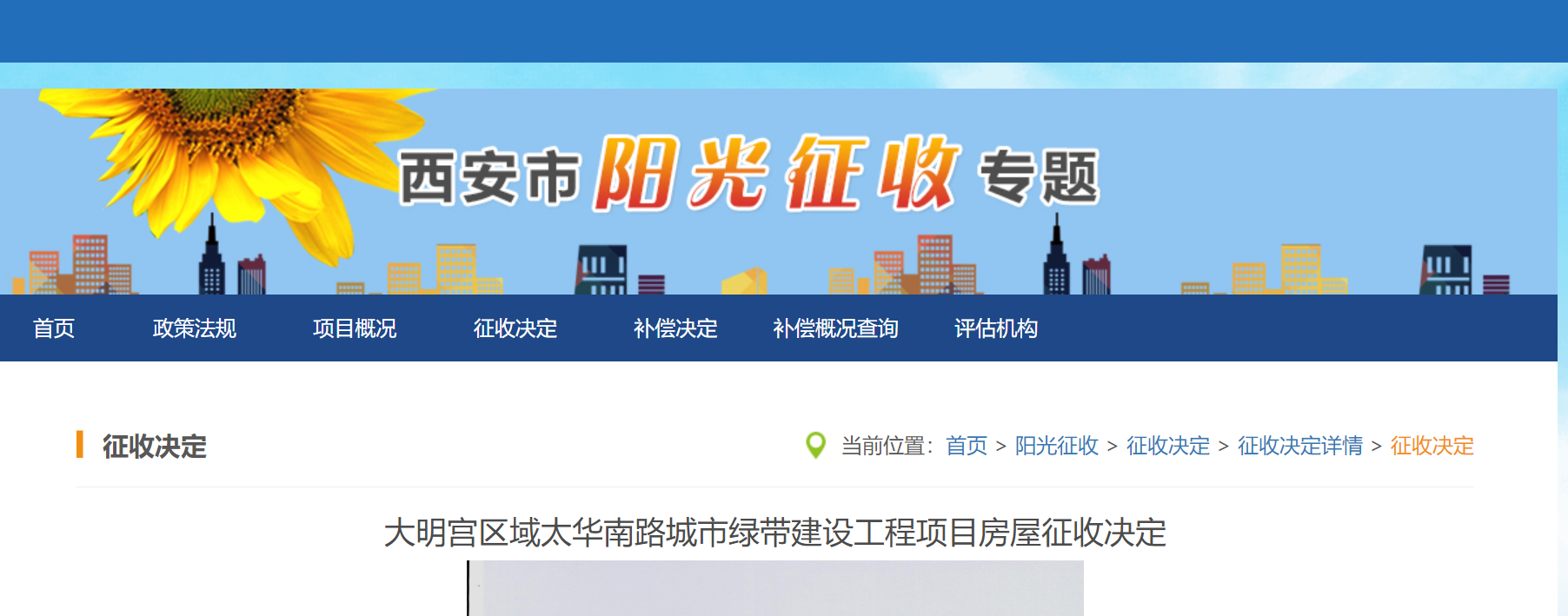 关于对大明宫区域太华南路城市绿带建设工程项目国有土地上房屋予以征收的决定
