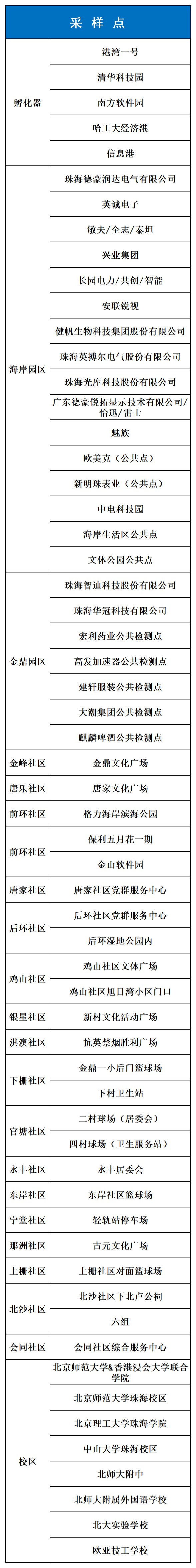 2022珠海高新区全员核酸检测点一览 2022珠海高新区全员核酸检测点一览表图片