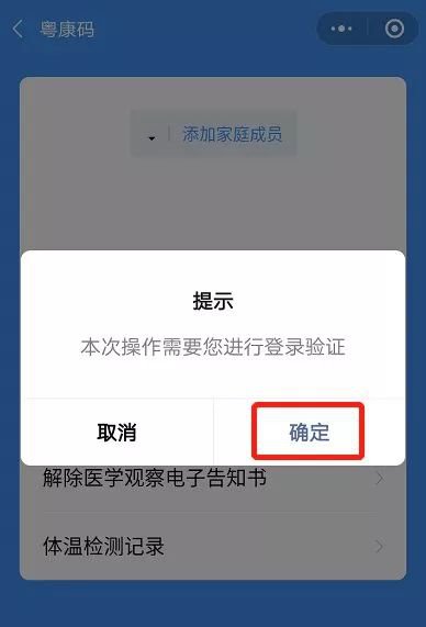 步骤3:登录完成后即可获取你的“粤康码”,可点击“添加家庭成员”对家庭成员的健康码进行管理。