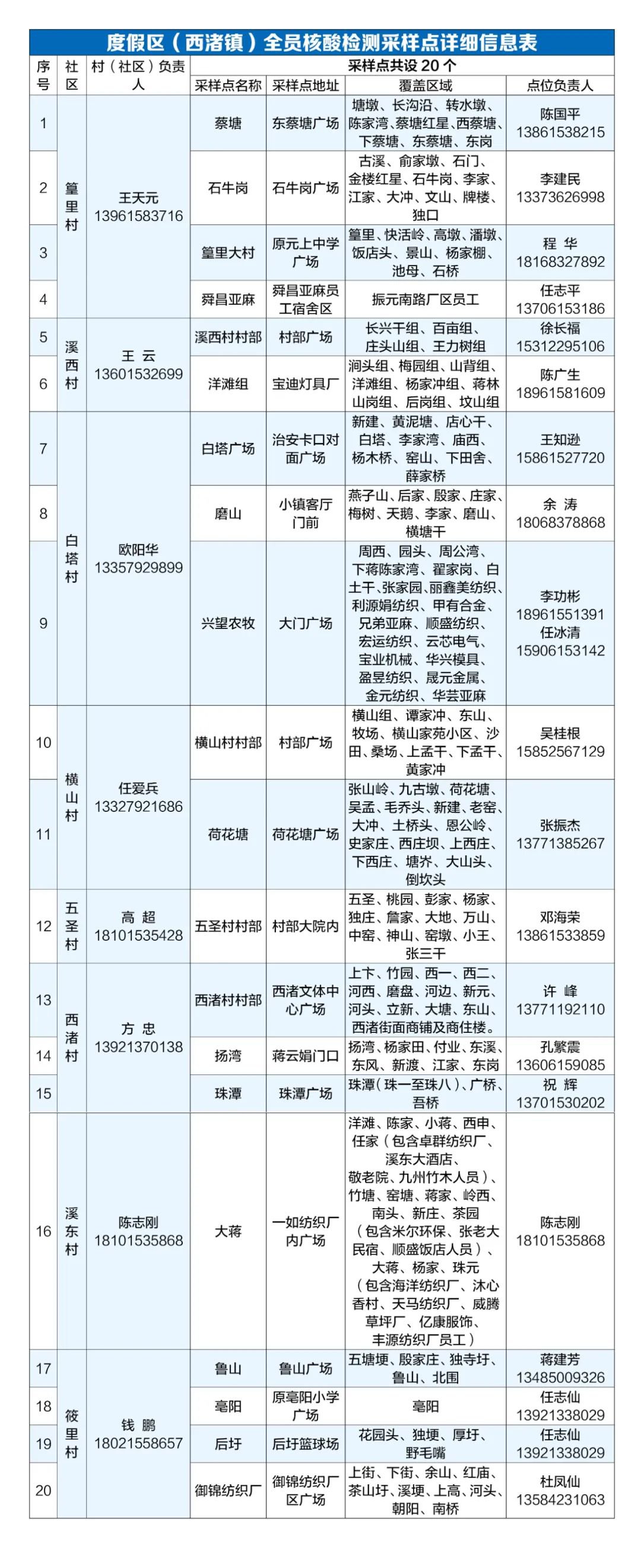 度假区(西渚镇)全员核酸检测采样点详细信息