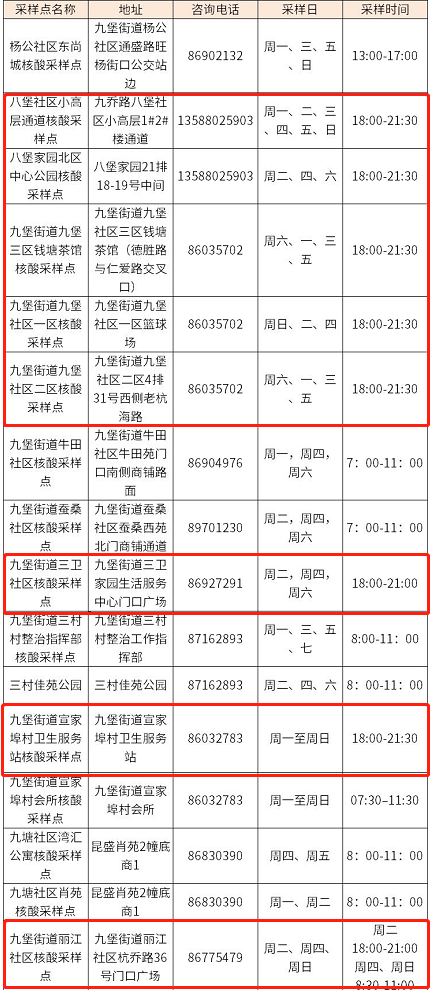 注:小编以下午六点之后还开放的常态核酸采样点进行汇总,由于常态化核酸点时间和地址可能会变化,请以实际采样时间为准。以下划红框的为下午六点之后还能做核酸的采样点。