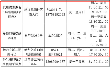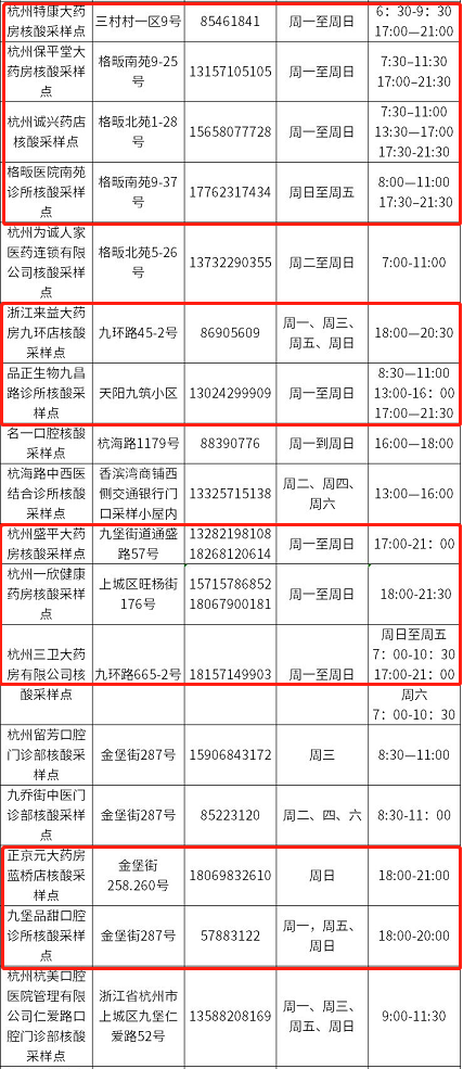 杭州上城区九堡街道夜间免费核酸点