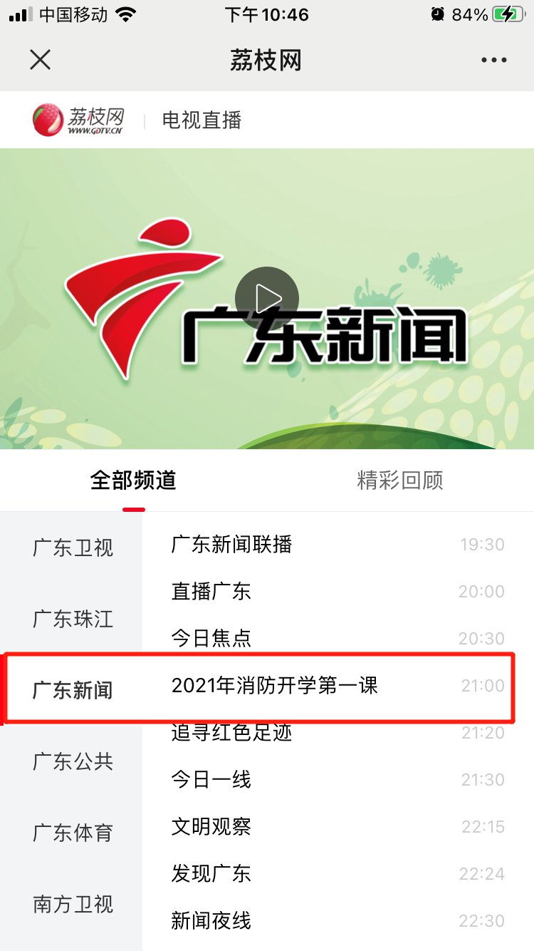 2021广东消防开学第一课直播入:广东新闻频道(手机端、电脑端均可观看)