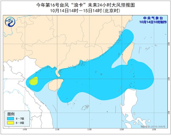 中央气象台10月14日10时继续发布台风蓝色预警:
