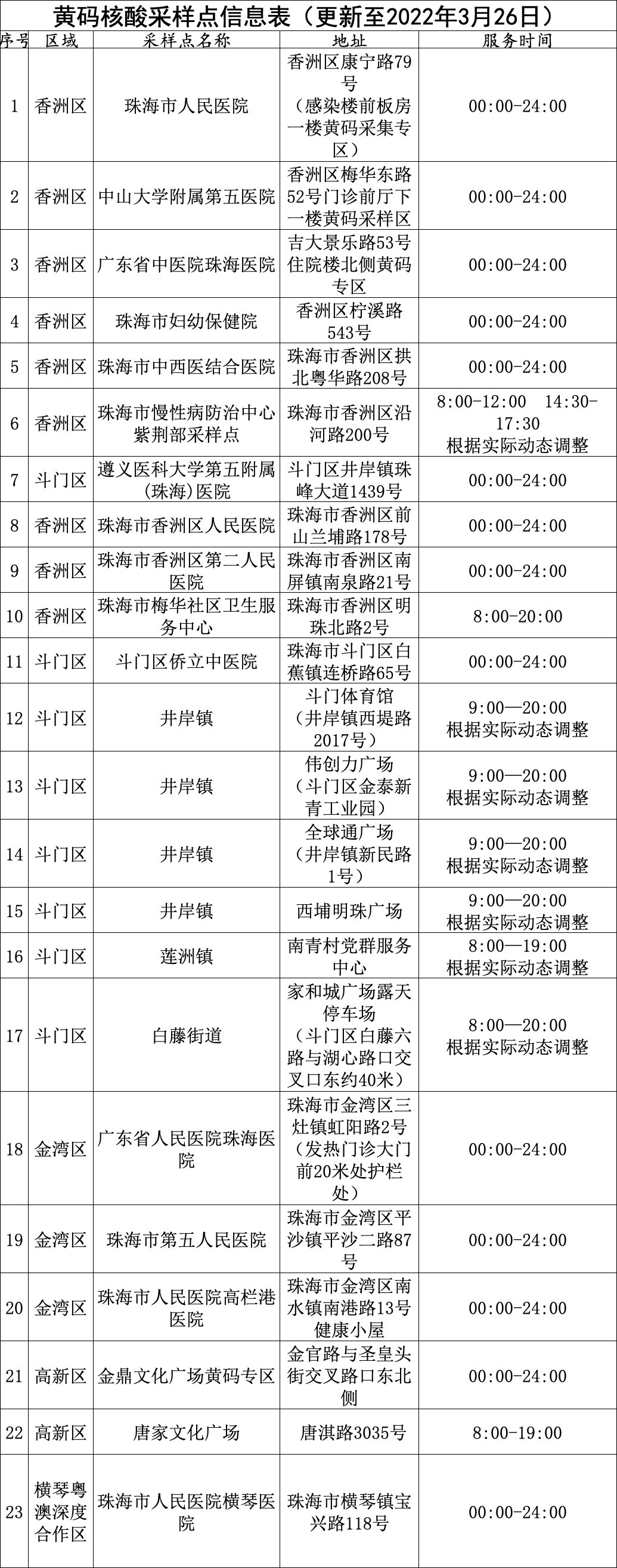 珠海市二级以上综合医院黄码专区检测点(地址+电话)