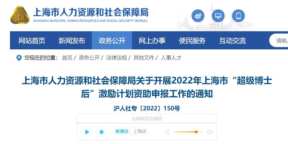 为进一步加大优秀博士后研究人员培养力度,助力打造高水平人才高地,加快上海“五个中心”特别是科创中心建设,根据《上海市“超级博士后”激励计划实施办法》(沪人社专〔2020〕223号),开展2022年上海市“超级博士后”激励计划(以下简称:“超博”计划)资助申报工作。现就有关事项通知如下:
