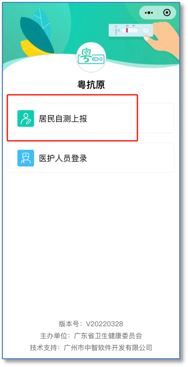 “粤抗原”小程序居民抗原自测结果上报操作步骤: