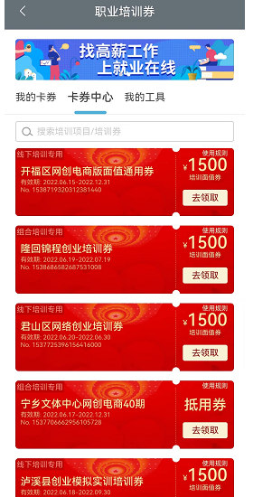 第二步:点击【去申领】,选择所需要的培训券进行领取即可。