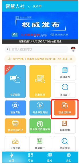 第一步:下载并进入智慧人社APP,点击【职业培训券】