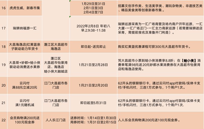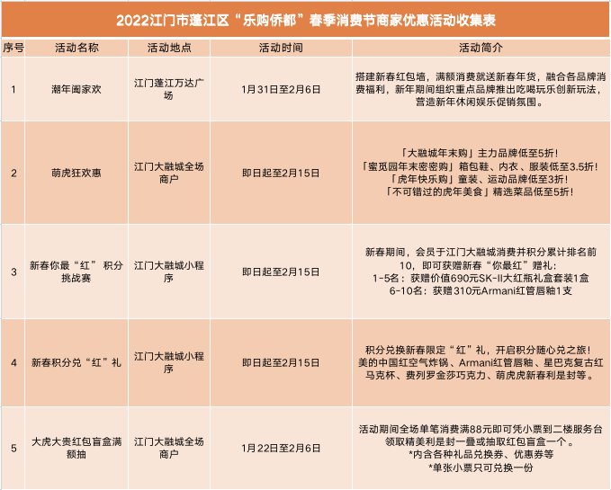 2022江门市蓬江区乐购侨都春季消费券商家优惠活动收集表