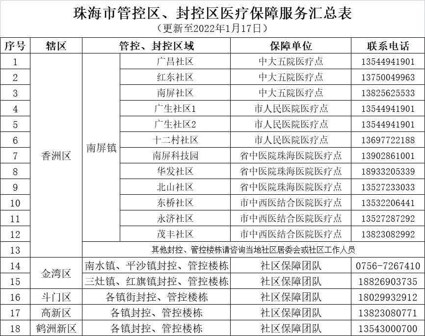 1月19日3时起香洲区翠香街道全域调整为防范区域