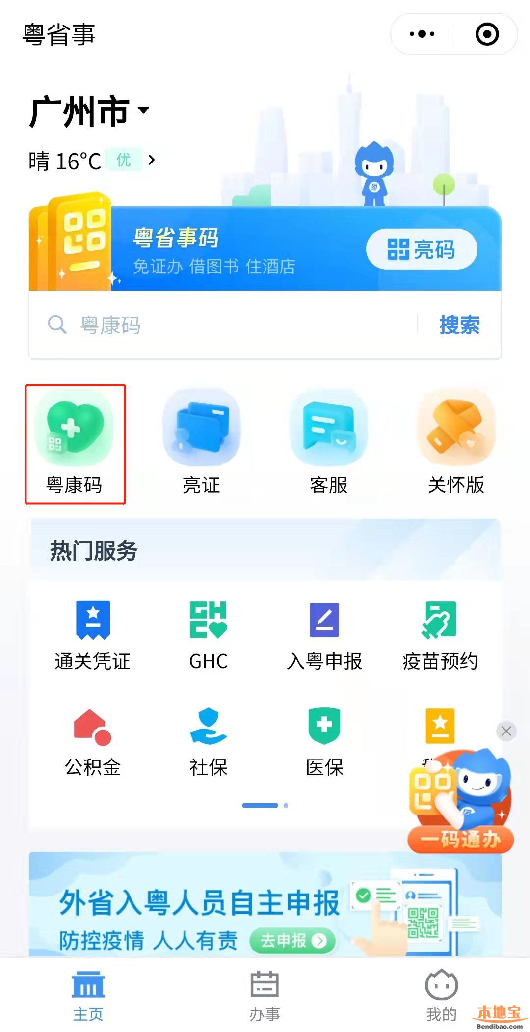 第一步:微信搜索并打开“粤省事”小程序,或者扫描下方葵花码进入;