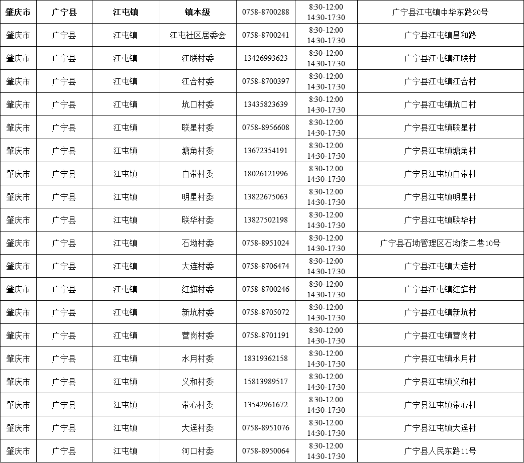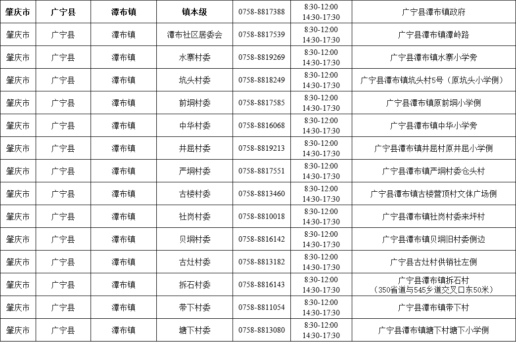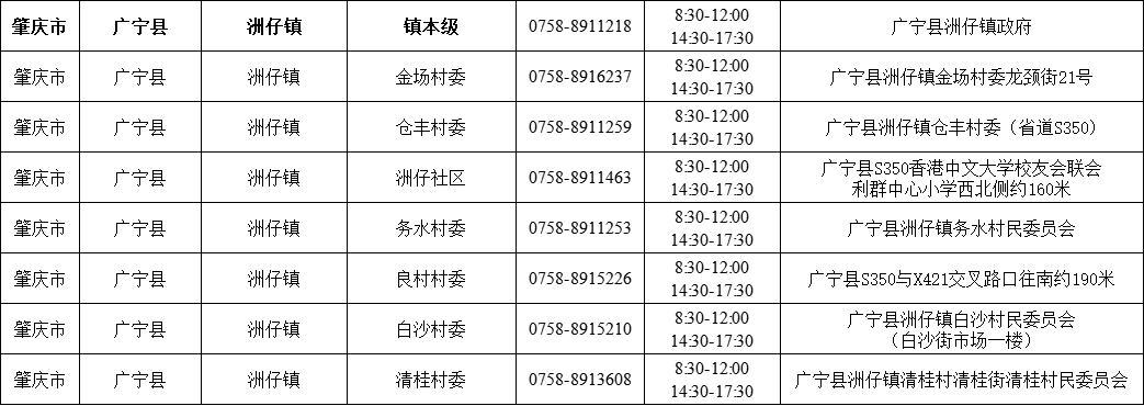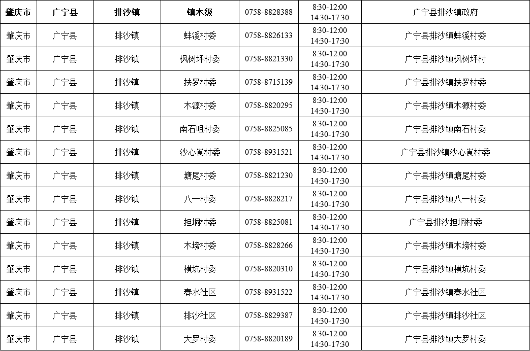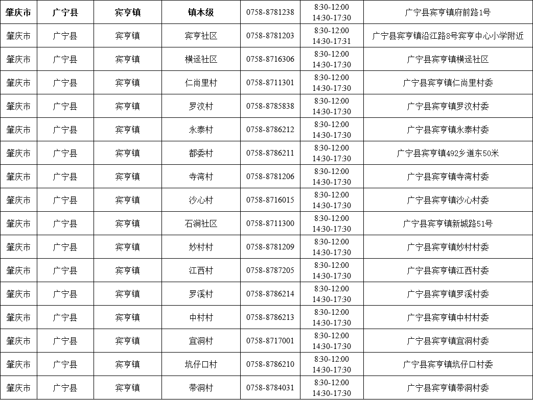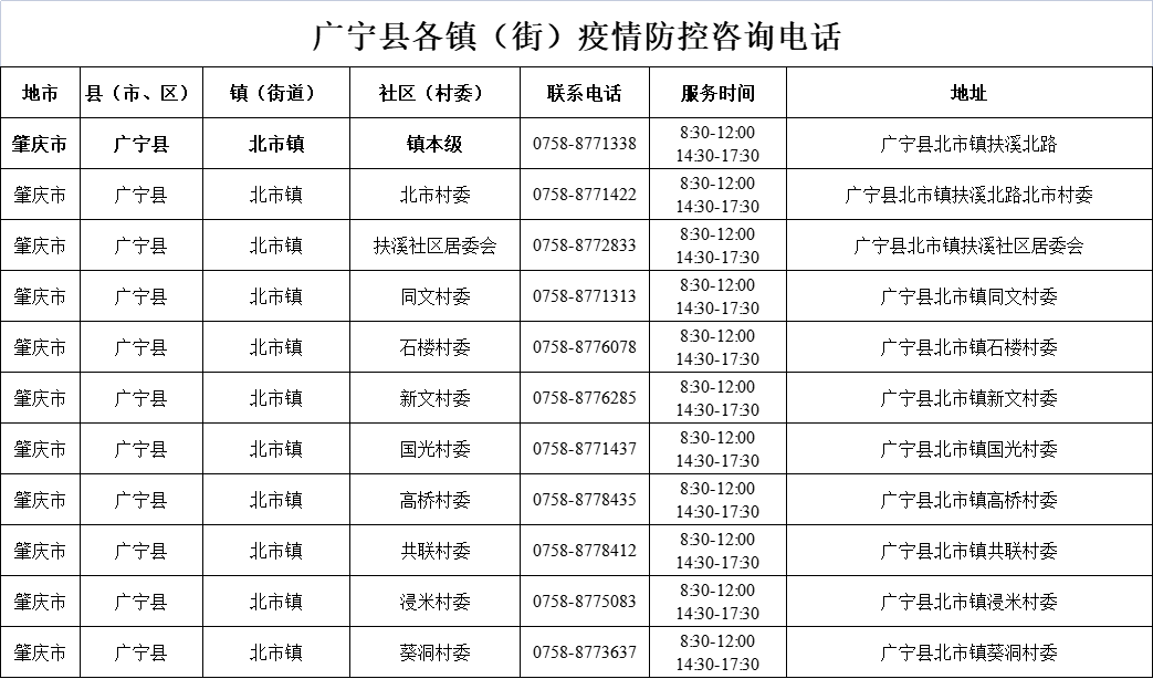 肇庆广宁县各镇(街)疫情防控咨询电话如下