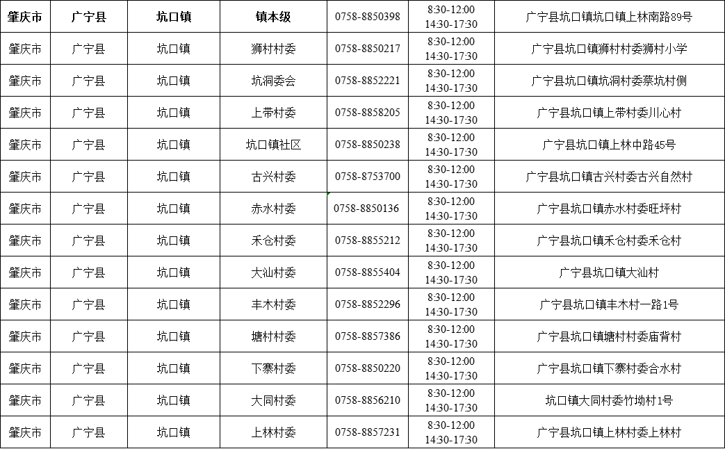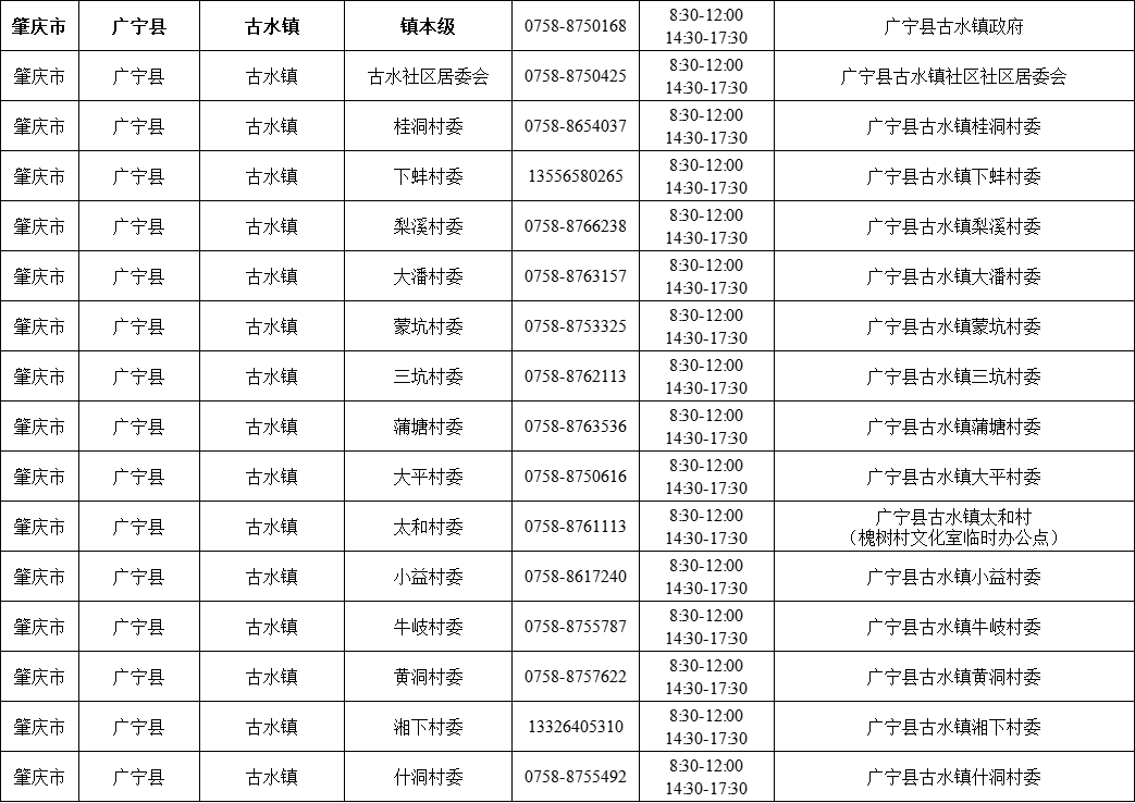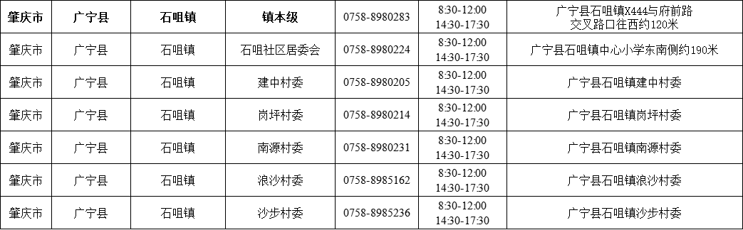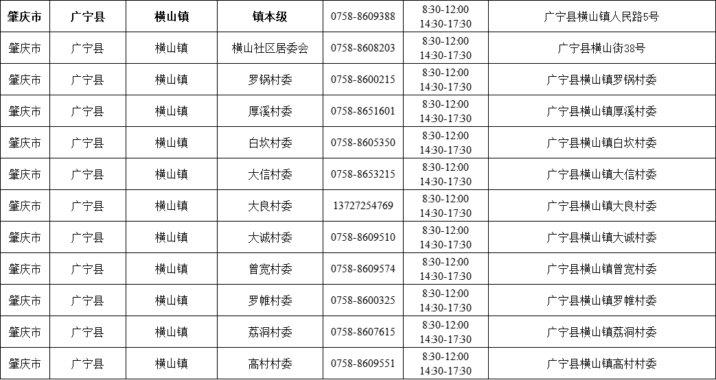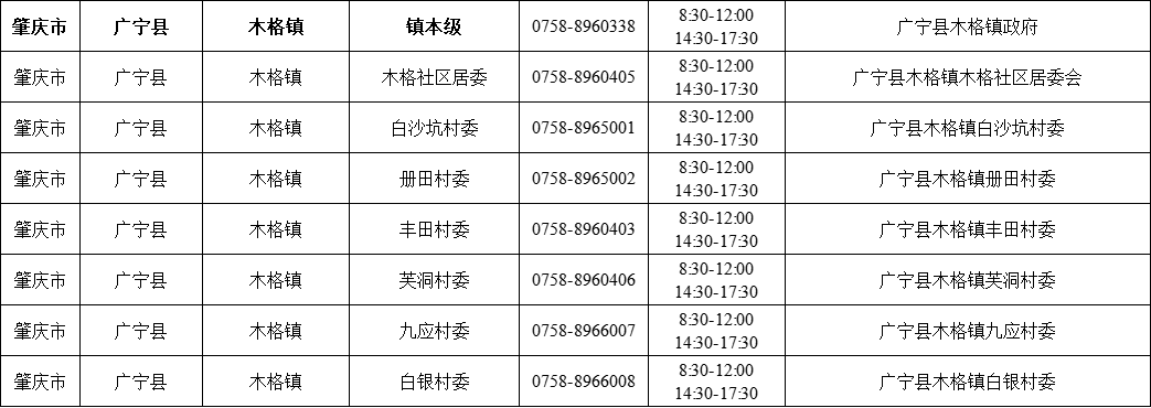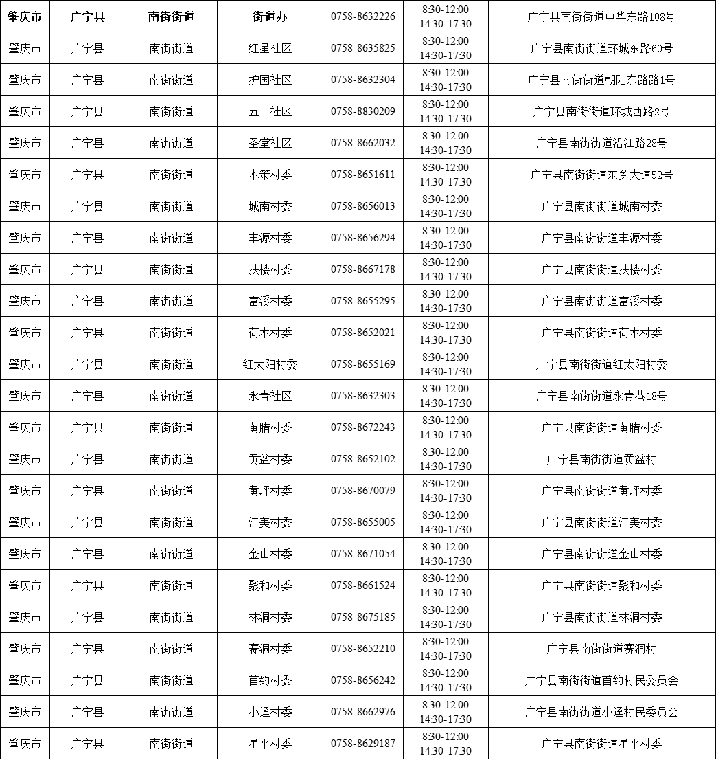 肇庆广宁县各镇(街)疫情防控咨询电话如下